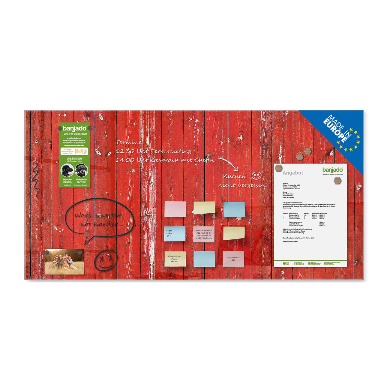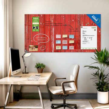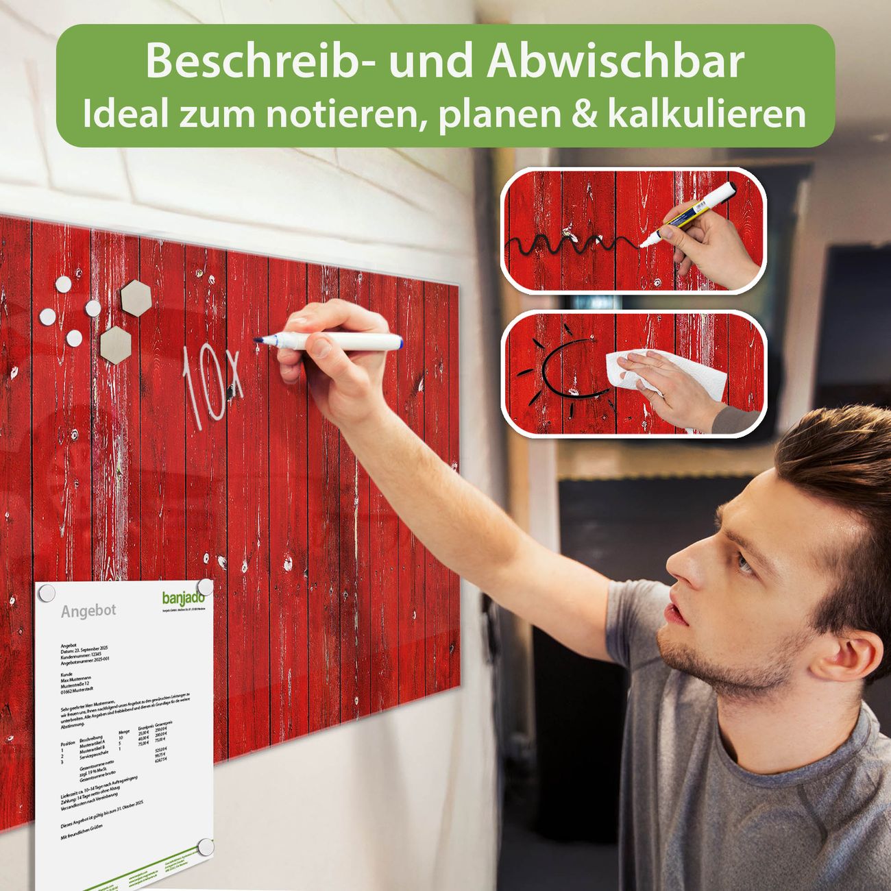 Glas Magnettafel im Querformat Motiv Rote Holzlatten