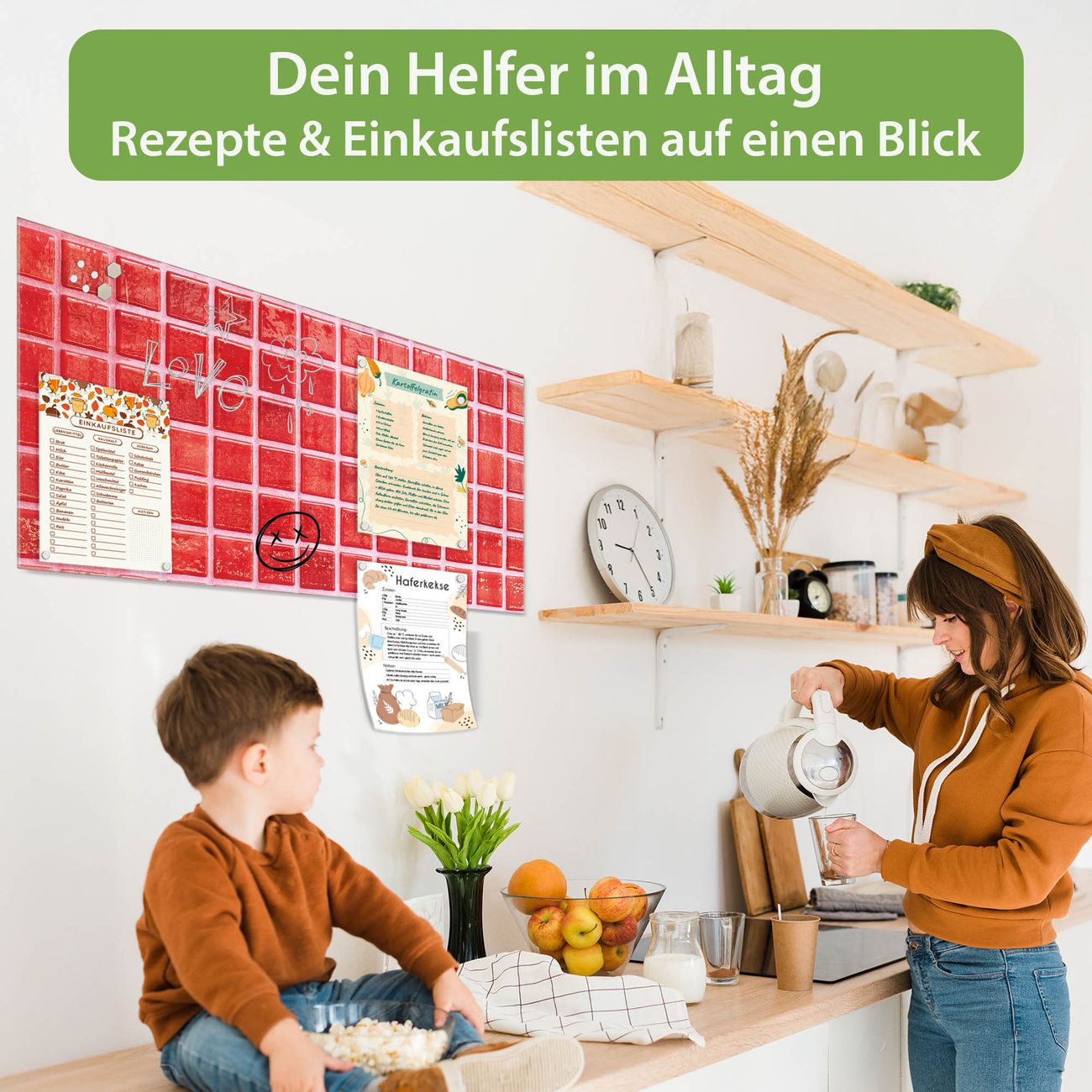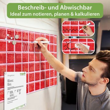 Ein Stück Design, das Ihren Alltag organisiert. Schreiben, heften, inspirieren - alles an einem Ort. Qualität, die man spürt. Montage leicht gemacht. Handwerk mit Herz - veredelt in Sachsen. Einzigartiges Design mit Motiv Motiv Rote Kacheln Beschreibbare Glasoberfläche, leicht zu reinigen Starke Magnetkraft durch Stahlrückwand Inklusive 4 Neodym-Magneten Flexible Montageoptionen Handveredelt in Sachsen - Qualität, die bleibt