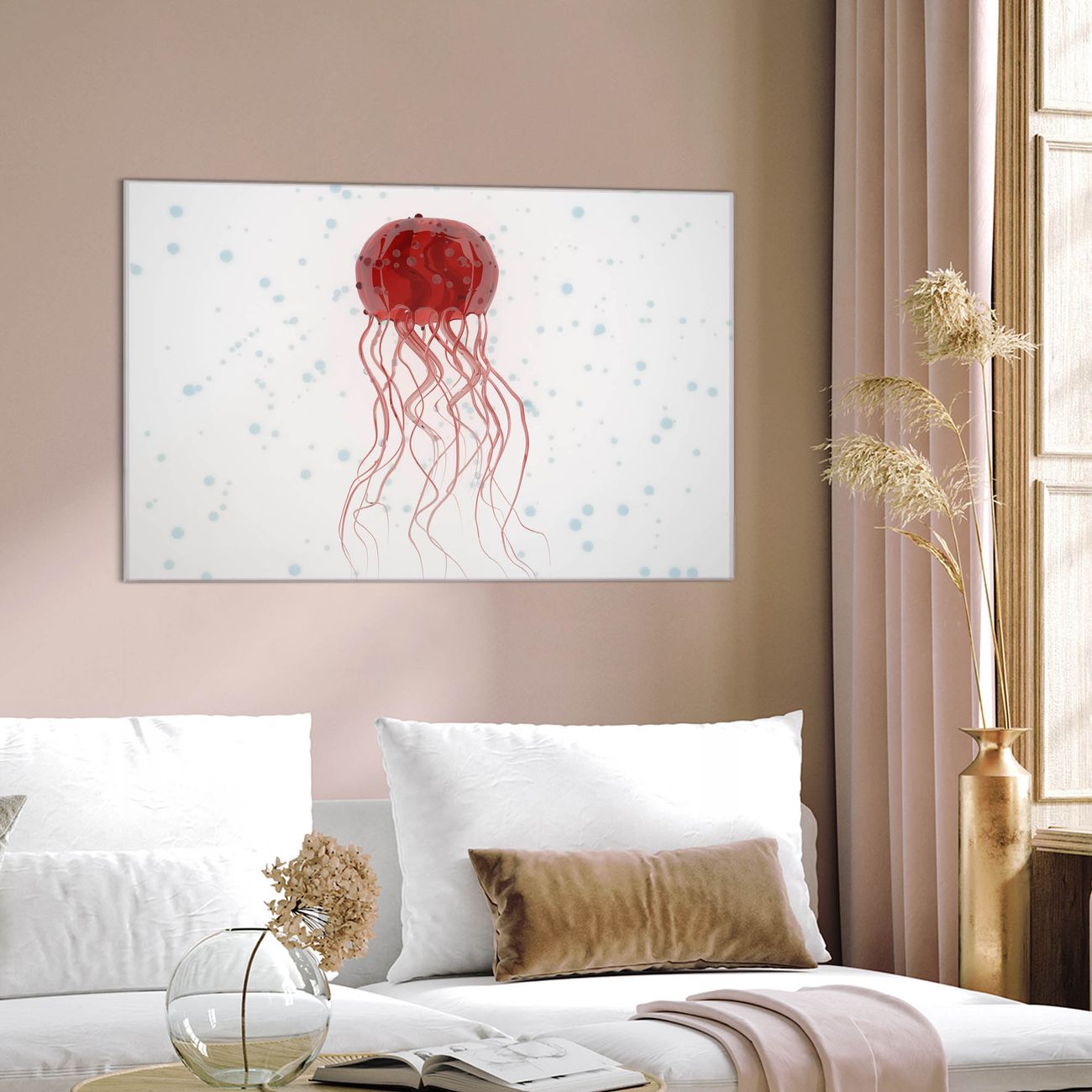 Glas Magnettafel im Querformat Rote Qualle