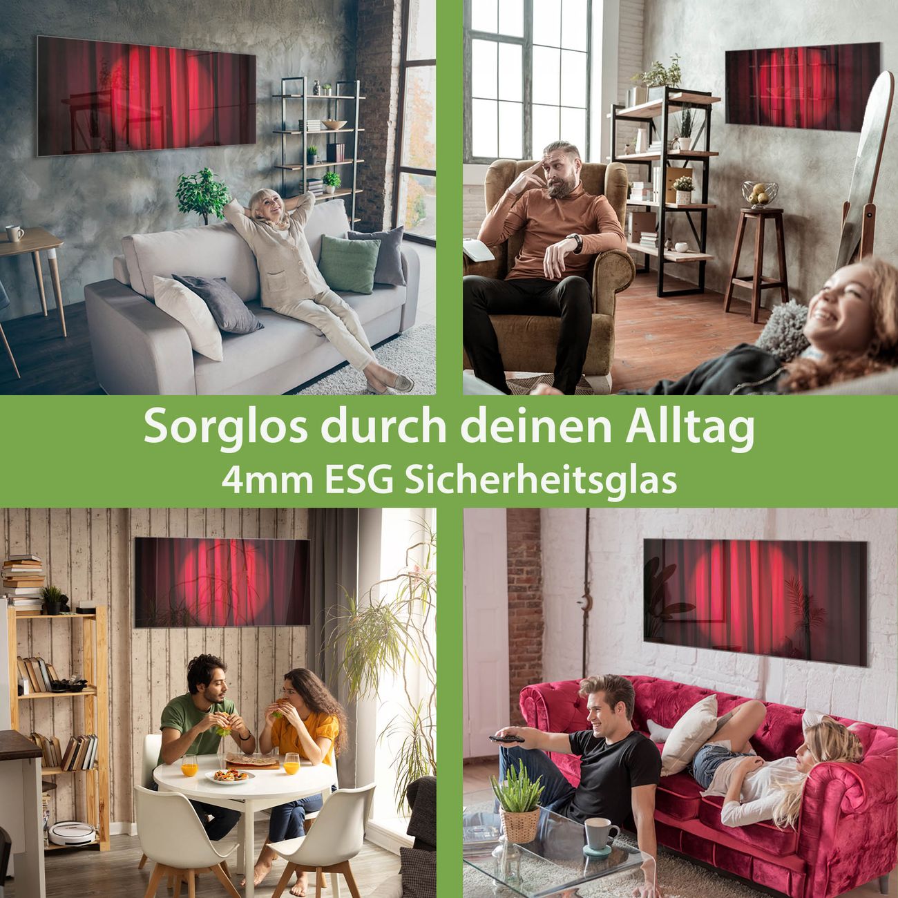 - Material: 4mm Sicherheitsglas mit Metallrückwand