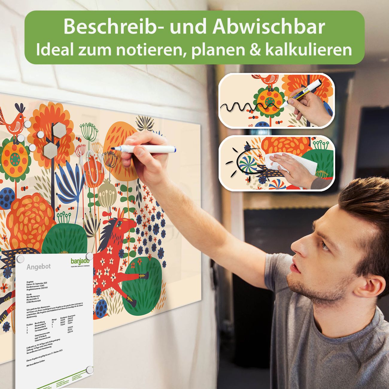 Jede Glas Magnettafel wird in unserer Werkstatt von Hand gefertigt und sorgfältig geprüft. So erhalten Sie ein echtes Qualitätsprodukt, das Funktion und Ästhetik perfekt vereint.?? Warum banjado?