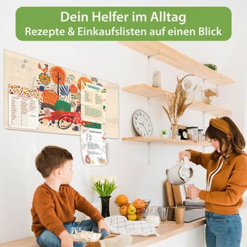 Auf der glatten Glasoberfläche lassen sich Termine, Rezepte oder Notizen ganz einfach mit Kreidestiften festhalten und rückstandslos entfernen. Starke Neodym-Magnete halten Ihre wichtigsten Erinnerungen sicher an Ort und Stelle. So entsteht Ihre ganz persönliche Ideenwand - jeden Tag neu.