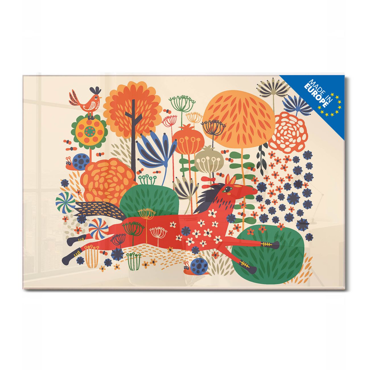 Glas Magnettafel im Querformat Motiv Rotes Pferd