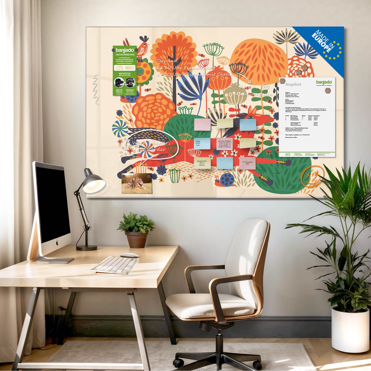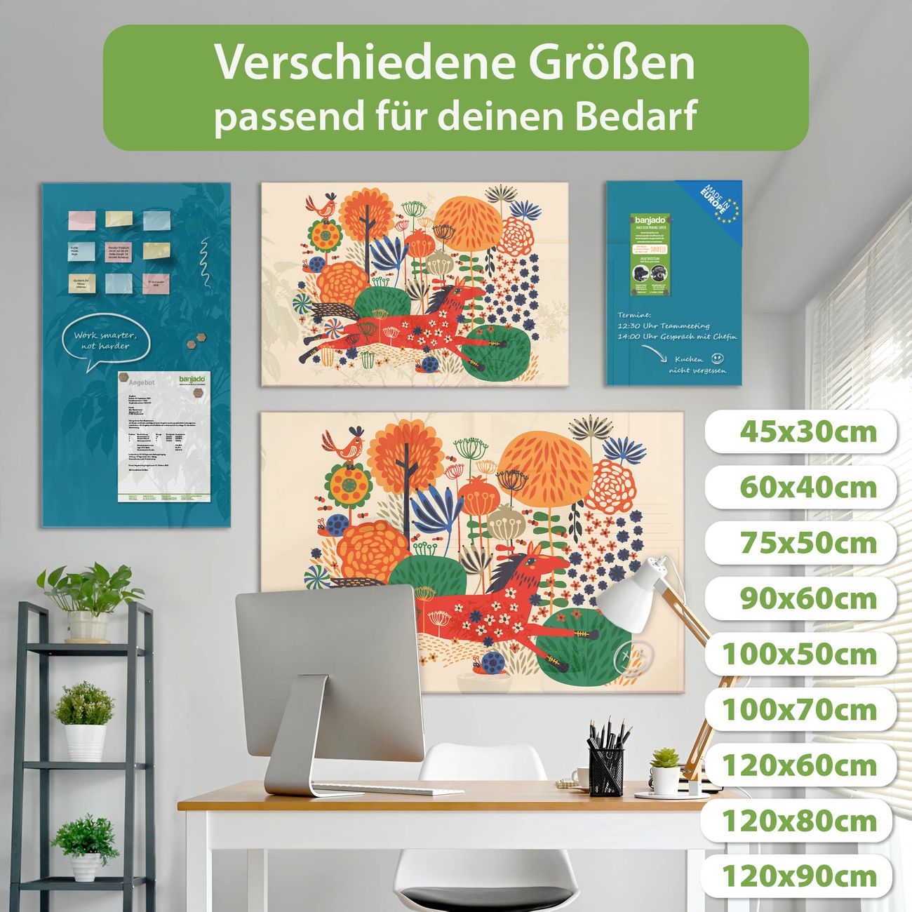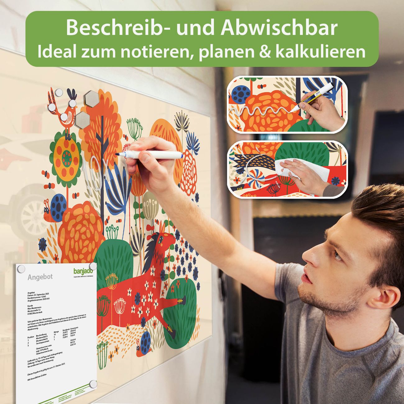 Jede Glas Magnettafel wird in unserer Werkstatt von Hand gefertigt und sorgfältig geprüft. So erhalten Sie ein echtes Qualitätsprodukt, das Funktion und Ästhetik perfekt vereint.?? Warum banjado?
