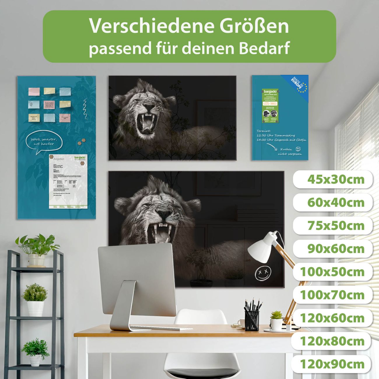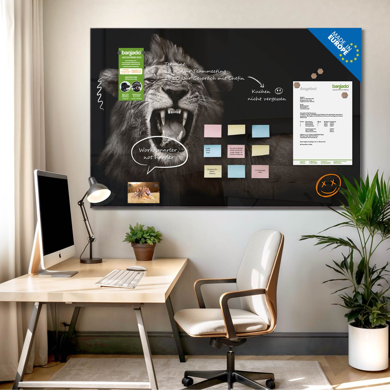 Jede Glas Magnettafel wird in unserer Werkstatt von Hand gefertigt und sorgfältig geprüft. So erhalten Sie ein echtes Qualitätsprodukt, das Funktion und Ästhetik perfekt vereint.?? Warum banjado?