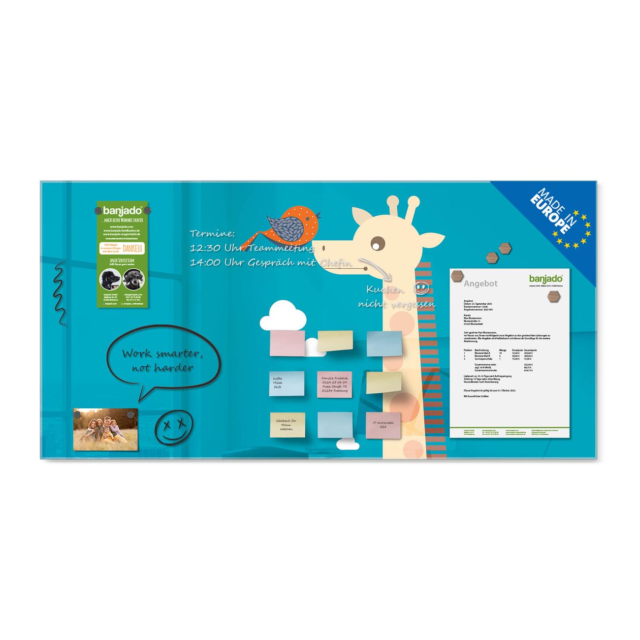 Bitte beachten Sie, dass ausschliessliche spezielle Magnete an der Glastafel haften. Wir empfehlen banjado Neodym Magnete, diese sind durch uns auf Wirksamkeit geprüft.