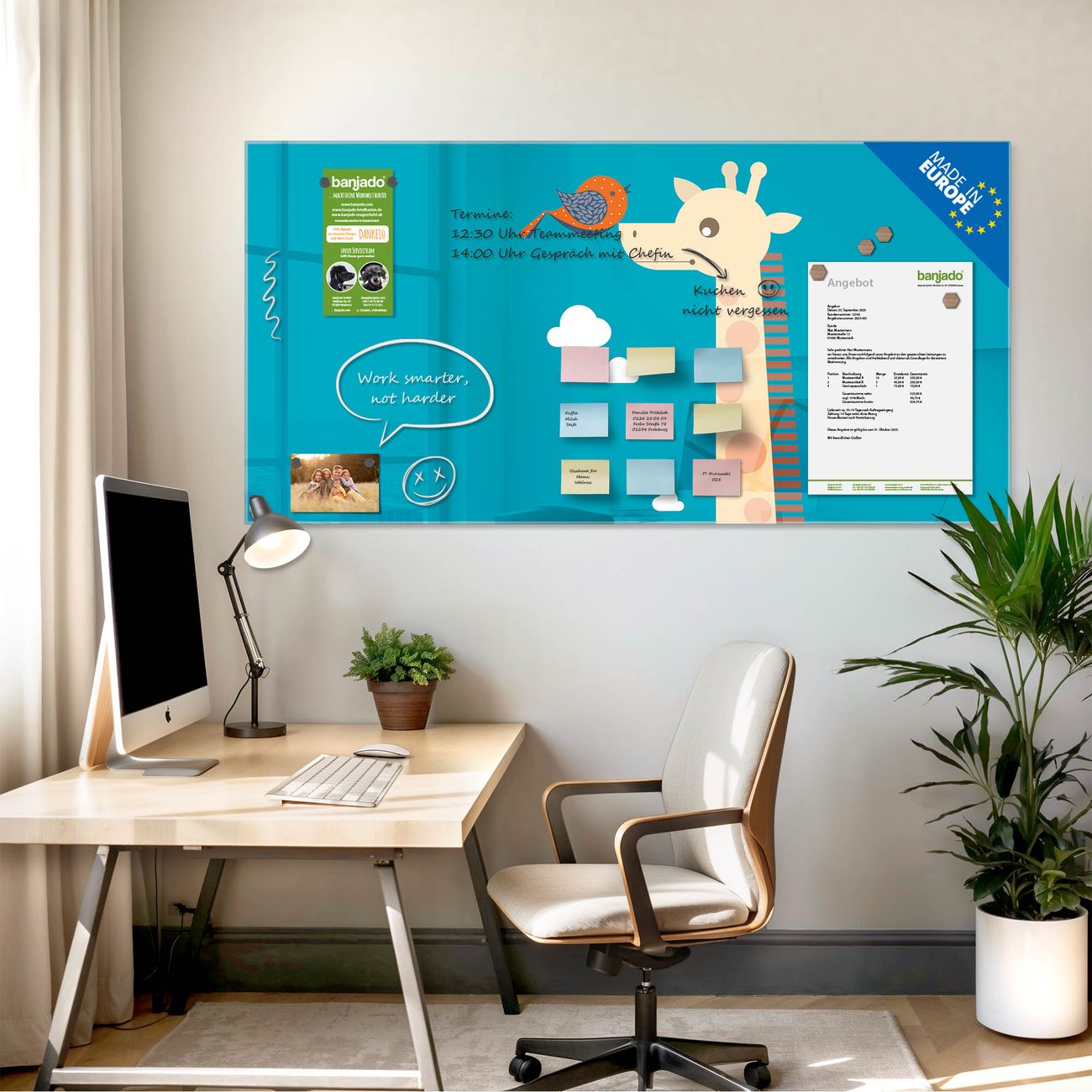 Jede Glas Magnettafel wird in unserer Werkstatt von Hand gefertigt und sorgfältig geprüft. So erhalten Sie ein echtes Qualitätsprodukt, das Funktion und Ästhetik perfekt vereint.?? Warum banjado?