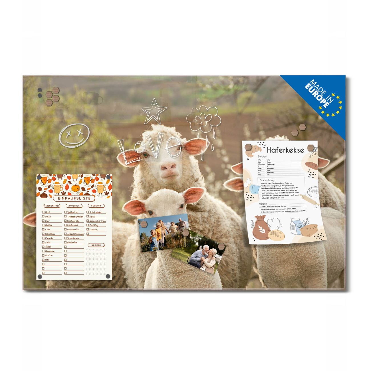Glas Magnettafel im Querformat Motiv Schaffamilie