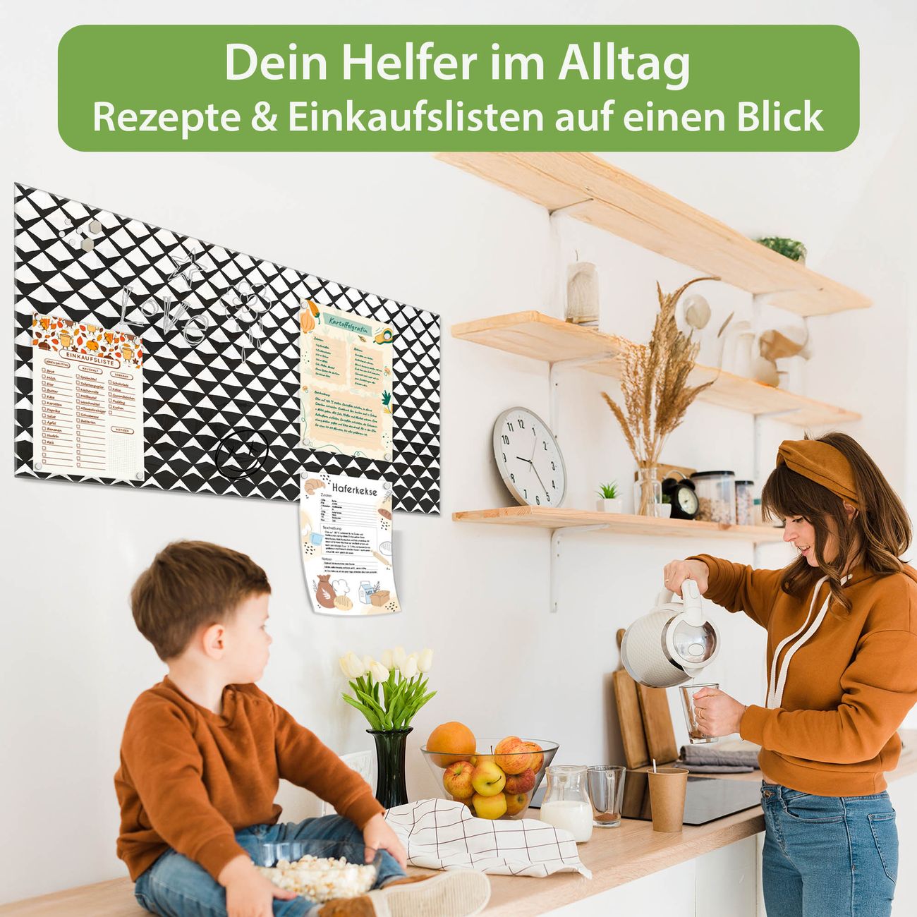 Auf der glatten Glasoberfläche lassen sich Termine, Rezepte oder Notizen ganz einfach mit Kreidestiften festhalten und rückstandslos entfernen. Starke Neodym-Magnete halten Ihre wichtigsten Erinnerungen sicher an Ort und Stelle. So entsteht Ihre ganz persönliche Ideenwand - jeden Tag neu.