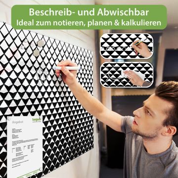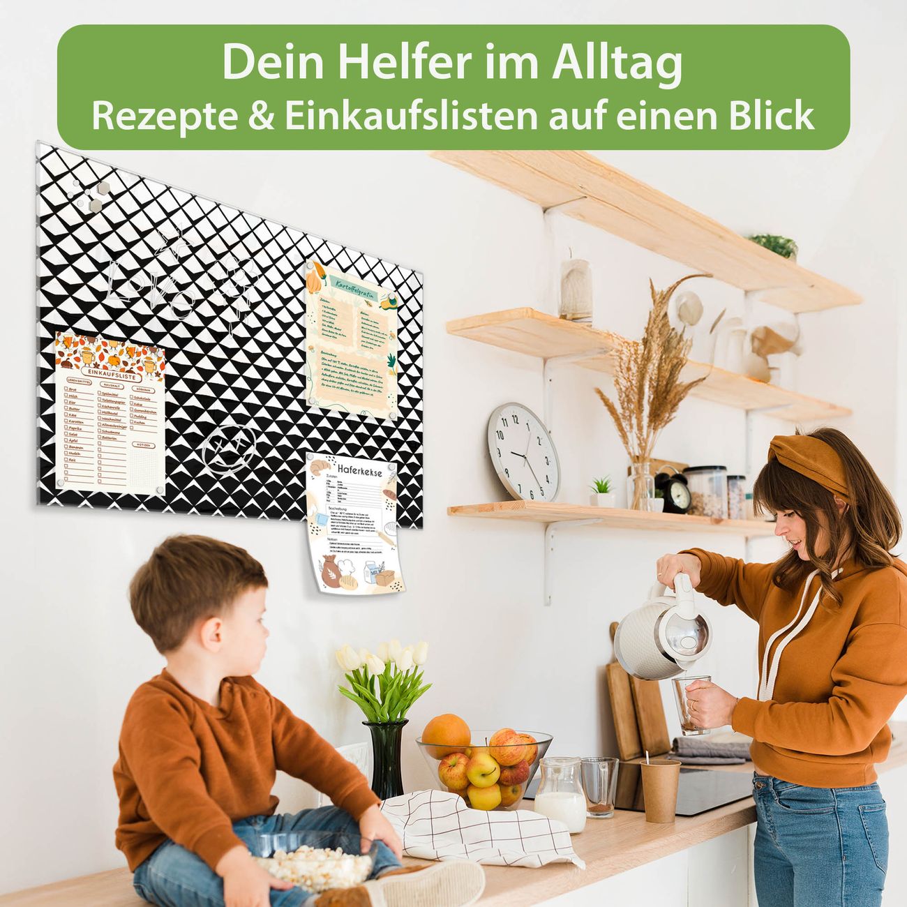 Auf der glatten Glasoberfläche lassen sich Termine, Rezepte oder Notizen ganz einfach mit Kreidestiften festhalten und rückstandslos entfernen. Starke Neodym-Magnete halten Ihre wichtigsten Erinnerungen sicher an Ort und Stelle. So entsteht Ihre ganz persönliche Ideenwand - jeden Tag neu.