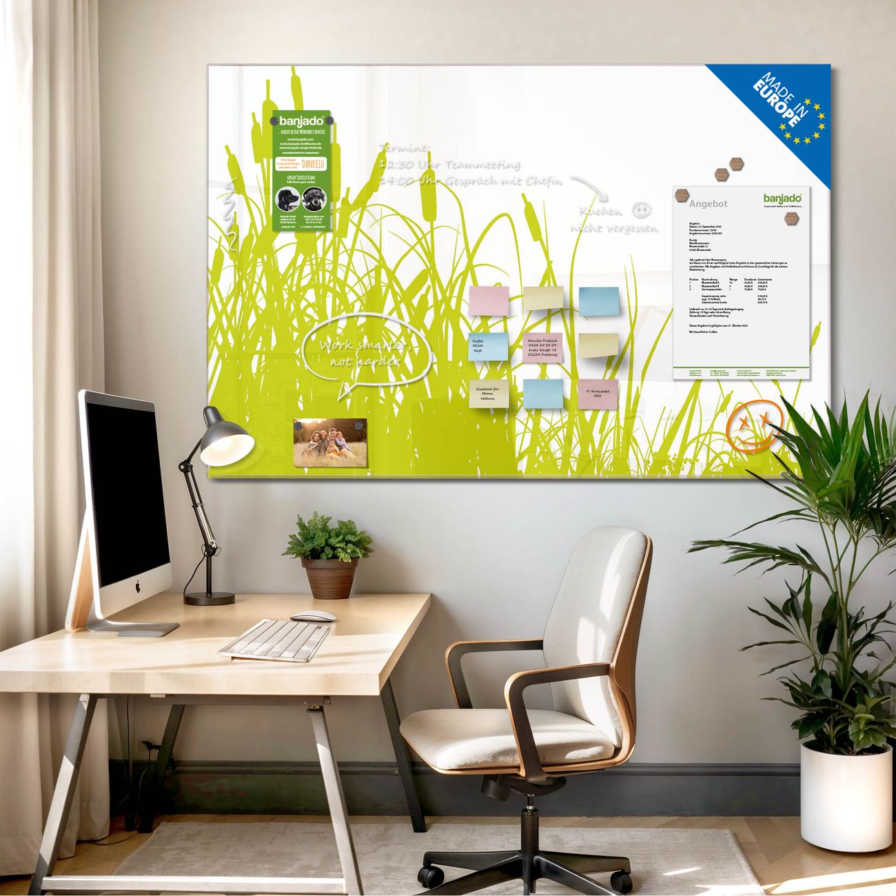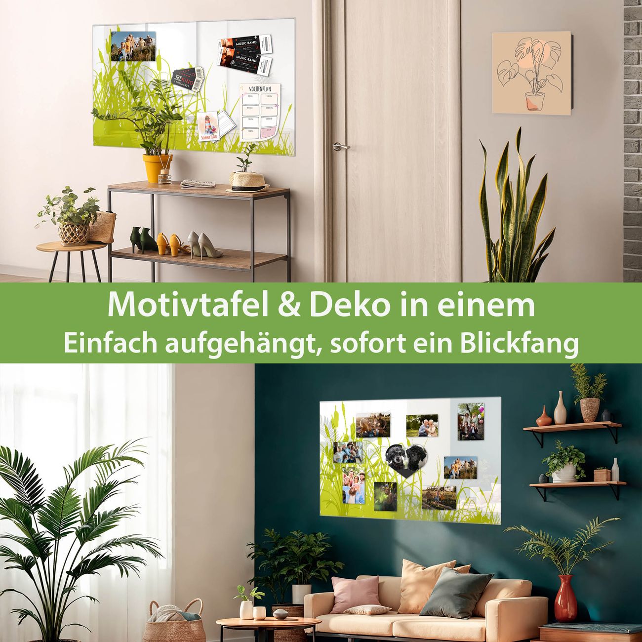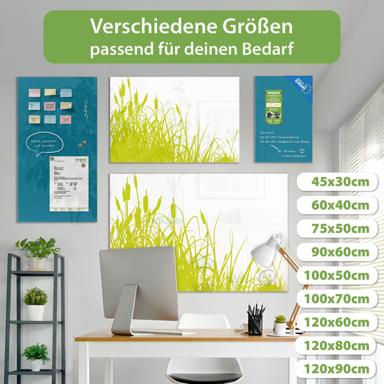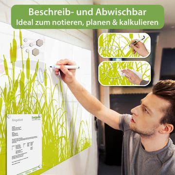 Die banjado Glas Magnettafel mit dem Motiv Motiv Schilf verbindet Funktionalität mit Stil. Sie ersetzt das Zettelchaos durch klare Strukturen und bringt dabei eine warme, natürliche Atmosphäre in Ihr Zuhause. Ob im Büro, in der Küche oder im Eingangsbereich - dieses Design-Board zieht Blicke an und sorgt für Ordnung mit Charakter.