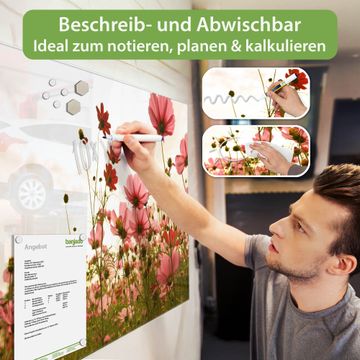 Gefertigt aus gehärtetem Sicherheitsglas mit einer magnetischen Rückwand aus Stahl überzeugt diese Magnettafel durch Stabilität und Langlebigkeit. Die Oberfläche bleibt dauerhaft brillant und pflegeleicht, selbst bei täglicher Nutzung.
