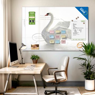 Die banjado Glas Magnettafel mit dem Motiv Motiv Schwan verbindet Funktionalität mit Stil. Sie ersetzt das Zettelchaos durch klare Strukturen und bringt dabei eine warme, natürliche Atmosphäre in Ihr Zuhause. Ob im Büro, in der Küche oder im Eingangsbereich - dieses Design-Board zieht Blicke an und sorgt für Ordnung mit Charakter.