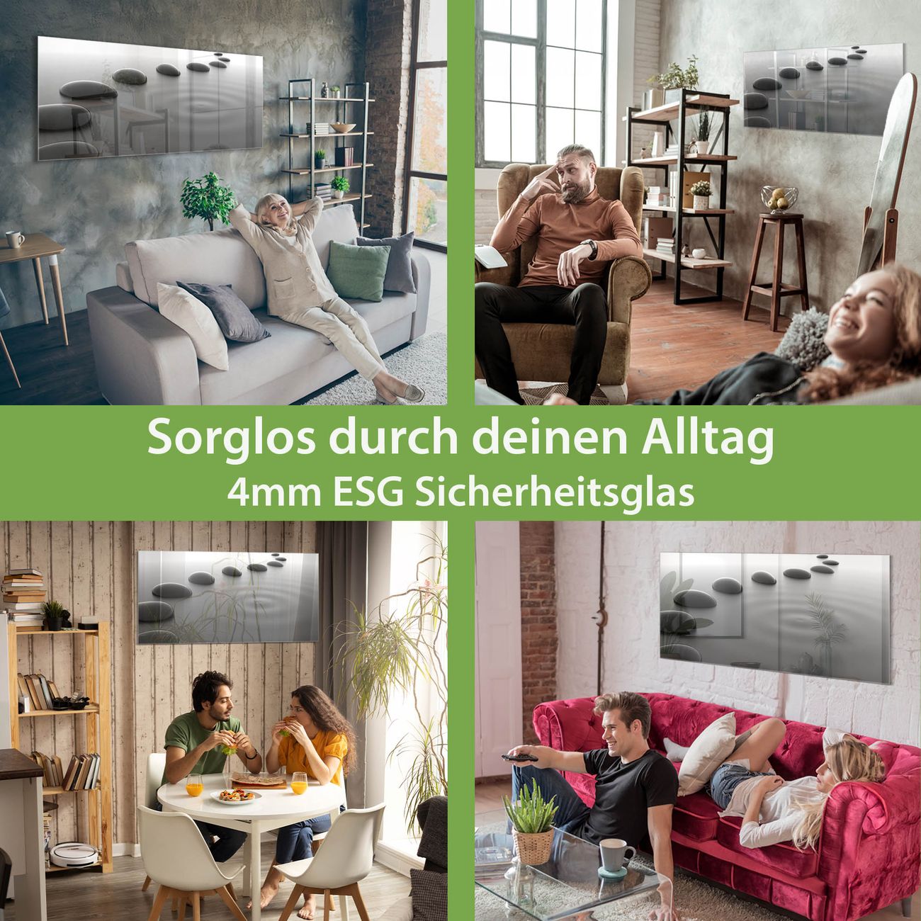 - Material: 4mm Sicherheitsglas mit Metallrückwand