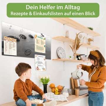 Auf der glatten Glasoberfläche lassen sich Termine, Rezepte oder Notizen ganz einfach mit Kreidestiften festhalten und rückstandslos entfernen. Starke Neodym-Magnete halten Ihre wichtigsten Erinnerungen sicher an Ort und Stelle. So entsteht Ihre ganz persönliche Ideenwand - jeden Tag neu.
