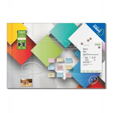 Die banjado Glas Magnettafel mit dem Motiv Motiv Schwebende Quadrate verbindet Funktionalität mit Stil. Sie ersetzt das Zettelchaos durch klare Strukturen und bringt dabei eine warme, natürliche Atmosphäre in Ihr Zuhause. Ob im Büro, in der Küche oder im Eingangsbereich - dieses Design-Board zieht Blicke an und sorgt für Ordnung mit Charakter.