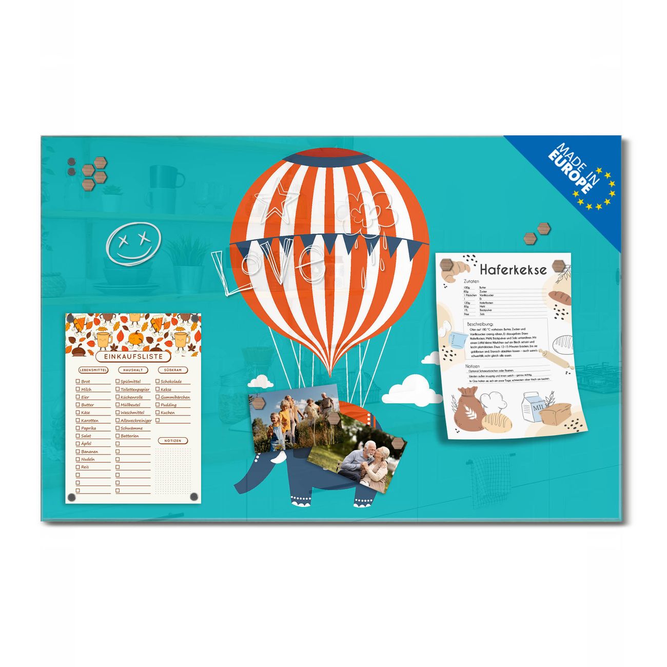 Ein Stück Design, das Ihren Alltag organisiert. Schreiben, heften, inspirieren - alles an einem Ort. Qualität, die man spürt. Montage leicht gemacht. Handwerk mit Herz - veredelt in Sachsen. Einzigartiges Design mit Motiv Motiv Schwerelos Beschreibbare Glasoberfläche, leicht zu reinigen Starke Magnetkraft durch Stahlrückwand Inklusive 4 Neodym-Magneten Flexible Montageoptionen Handveredelt in Sachsen - Qualität, die bleibt