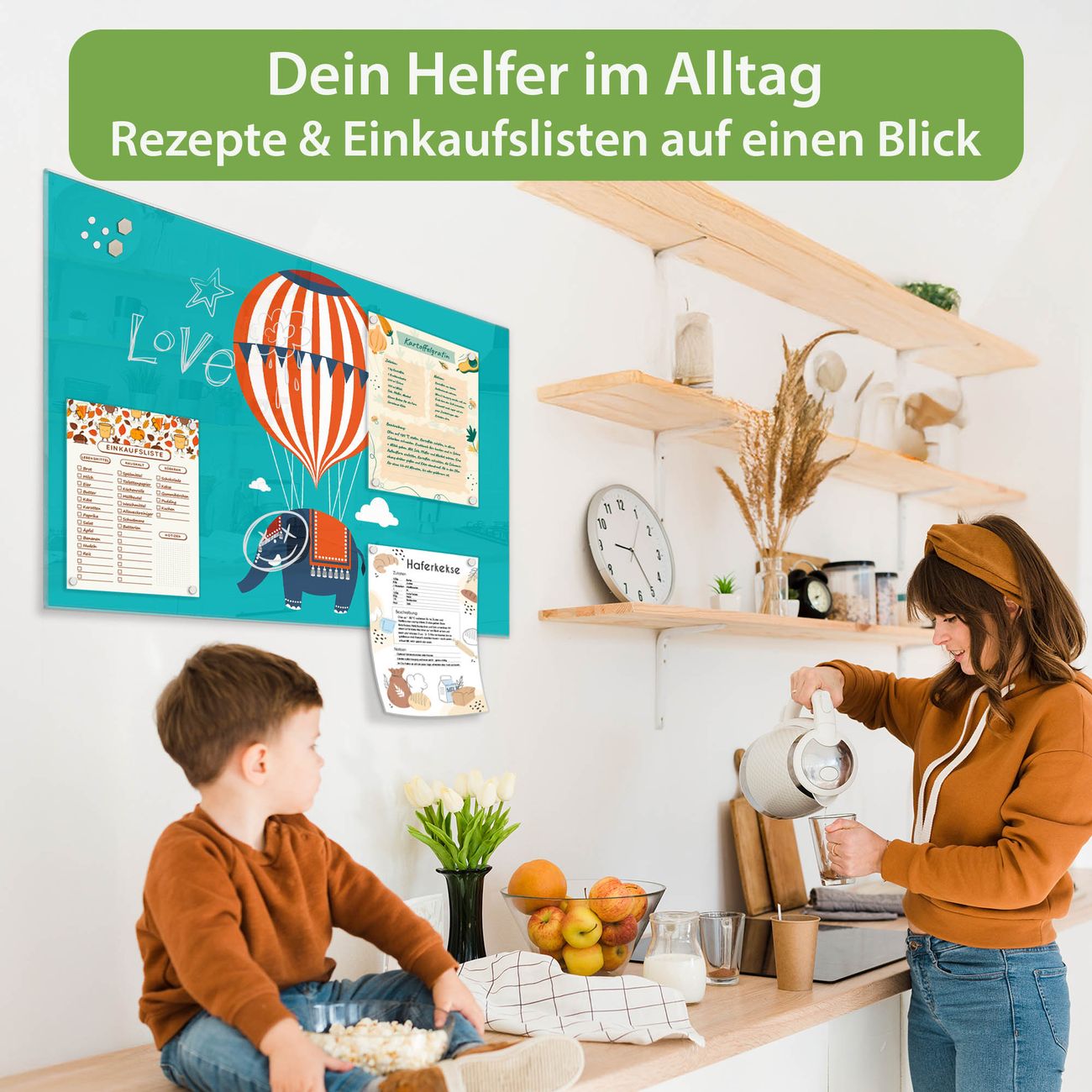 Auf der glatten Glasoberfläche lassen sich Termine, Rezepte oder Notizen ganz einfach mit Kreidestiften festhalten und rückstandslos entfernen. Starke Neodym-Magnete halten Ihre wichtigsten Erinnerungen sicher an Ort und Stelle. So entsteht Ihre ganz persönliche Ideenwand - jeden Tag neu.
