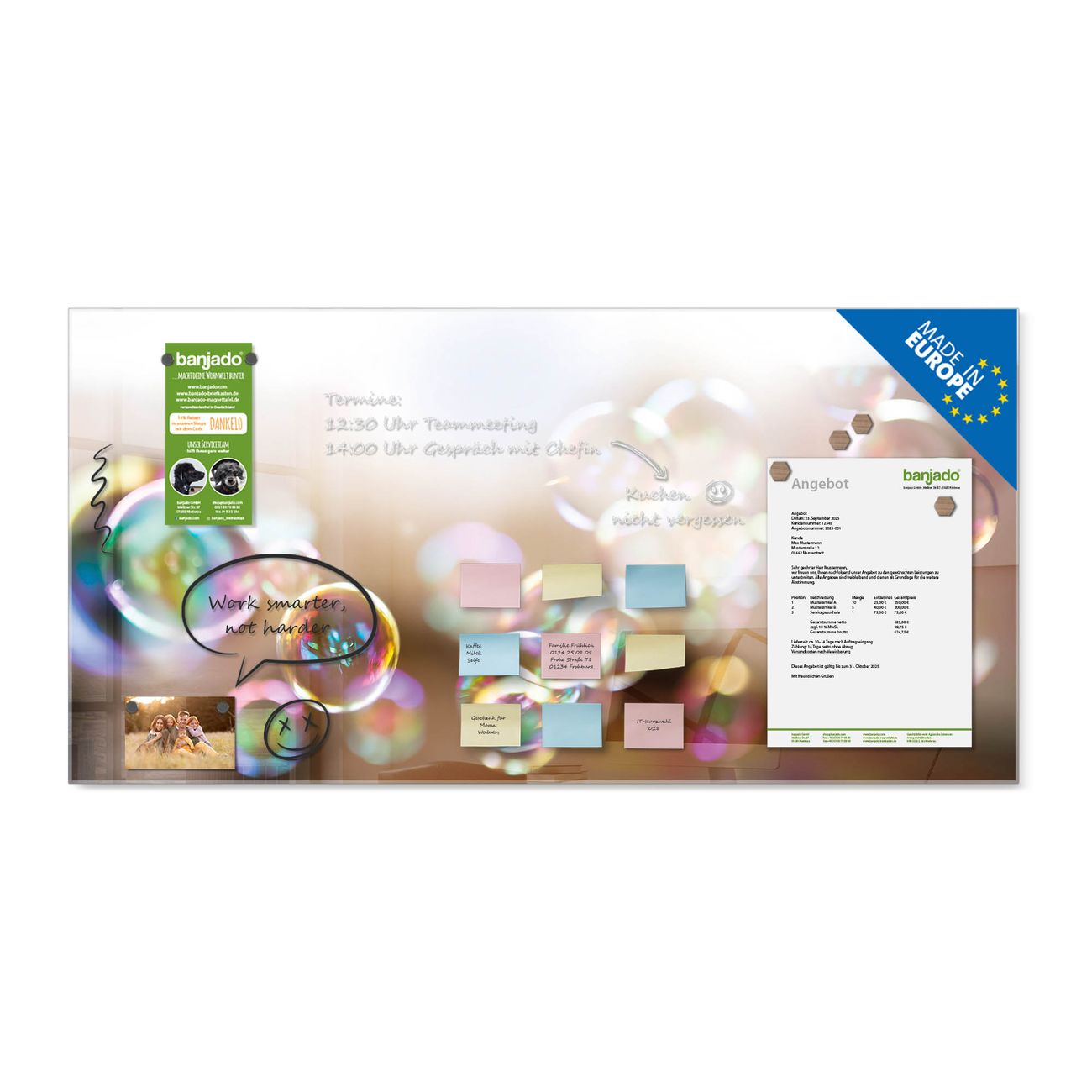 Glas Magnettafel im Querformat Motiv Seifenblasen