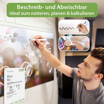 Die banjado Glas Magnettafel mit dem Motiv Motiv Seifenblasen verbindet Funktionalität mit Stil. Sie ersetzt das Zettelchaos durch klare Strukturen und bringt dabei eine warme, natürliche Atmosphäre in Ihr Zuhause. Ob im Büro, in der Küche oder im Eingangsbereich - dieses Design-Board zieht Blicke an und sorgt für Ordnung mit Charakter.