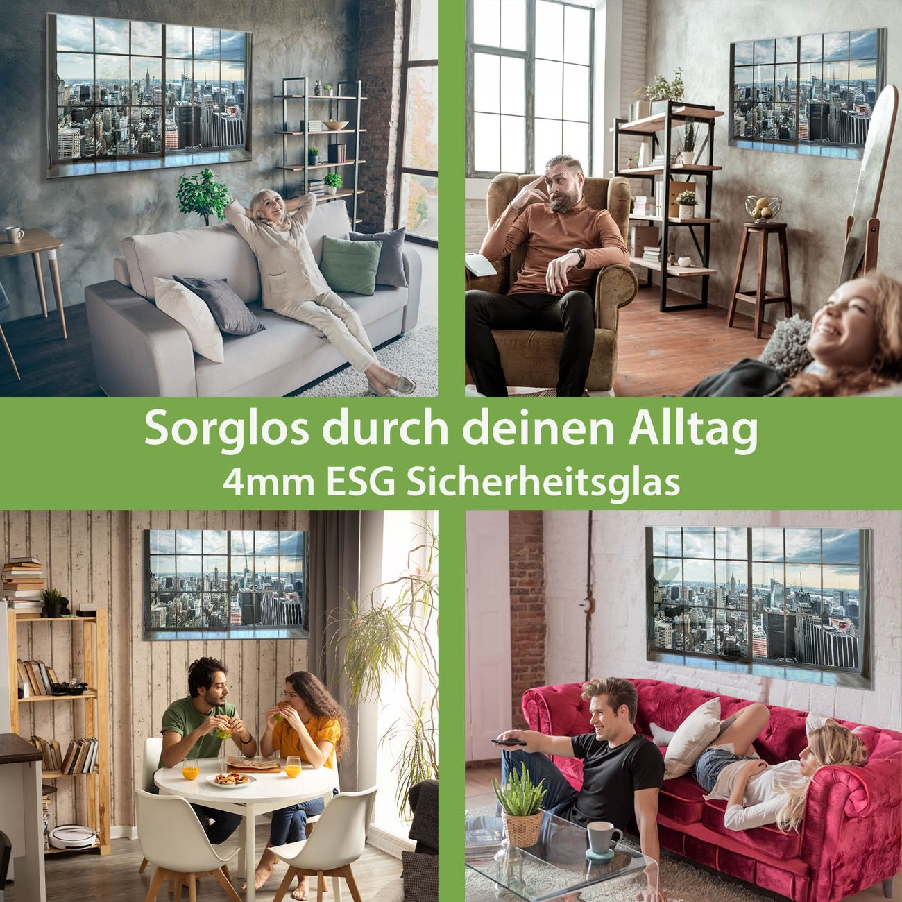 - Material: 4mm Sicherheitsglas mit Metallrückwand