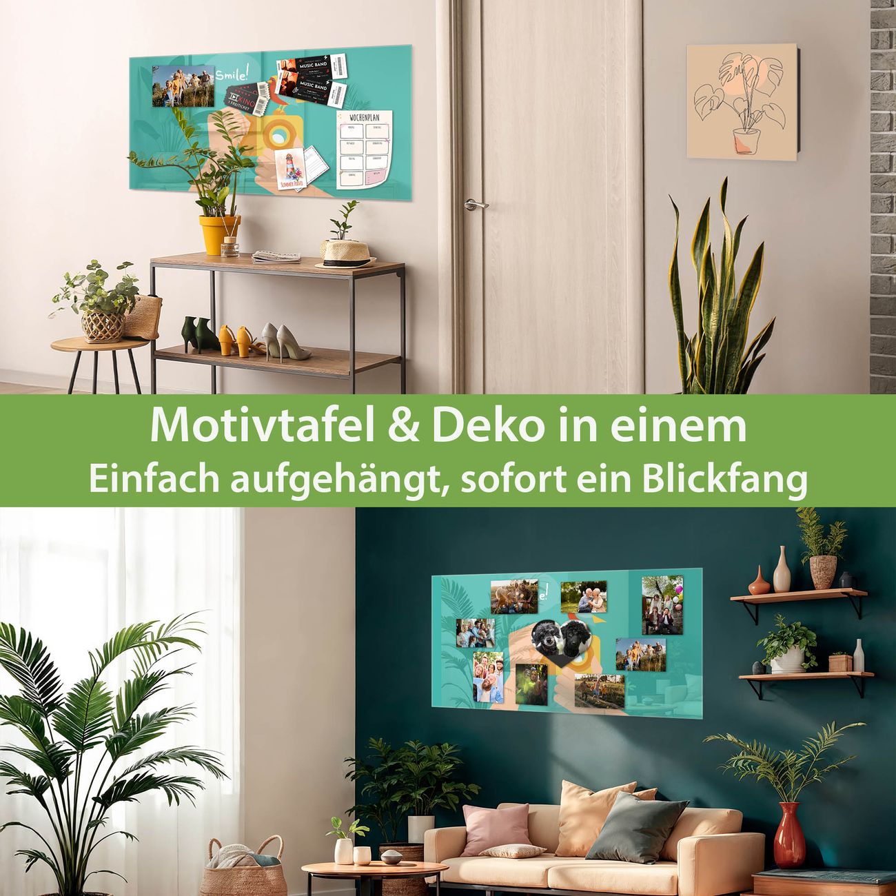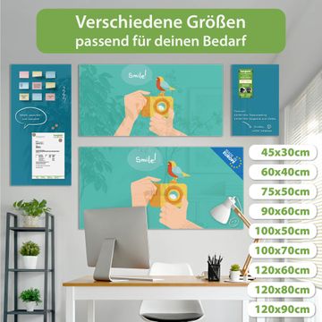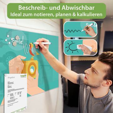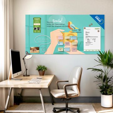 Die banjado Glas Magnettafel mit dem Motiv Motiv Bitte Lächeln 2 verbindet Funktionalität mit Stil. Sie ersetzt das Zettelchaos durch klare Strukturen und bringt dabei eine warme, natürliche Atmosphäre in Ihr Zuhause. Ob im Büro, in der Küche oder im Eingangsbereich - dieses Design-Board zieht Blicke an und sorgt für Ordnung mit Charakter.