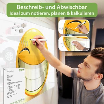 Jede Glas Magnettafel wird in unserer Werkstatt von Hand gefertigt und sorgfältig geprüft. So erhalten Sie ein echtes Qualitätsprodukt, das Funktion und Ästhetik perfekt vereint.?? Warum banjado?