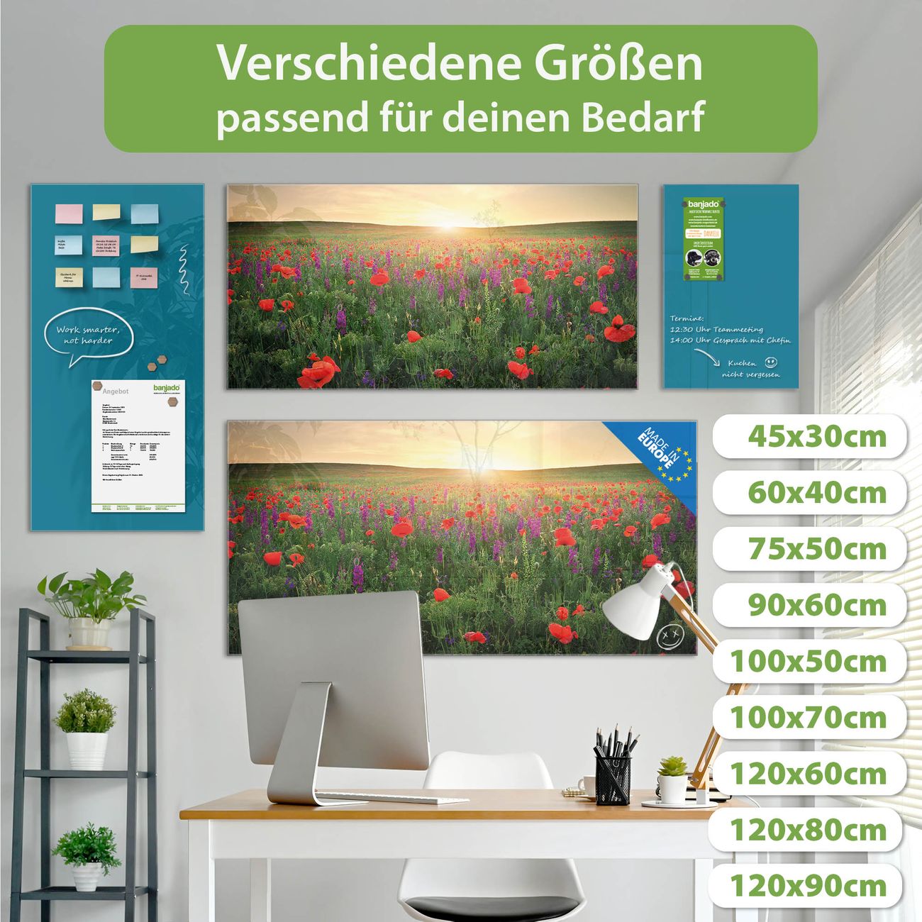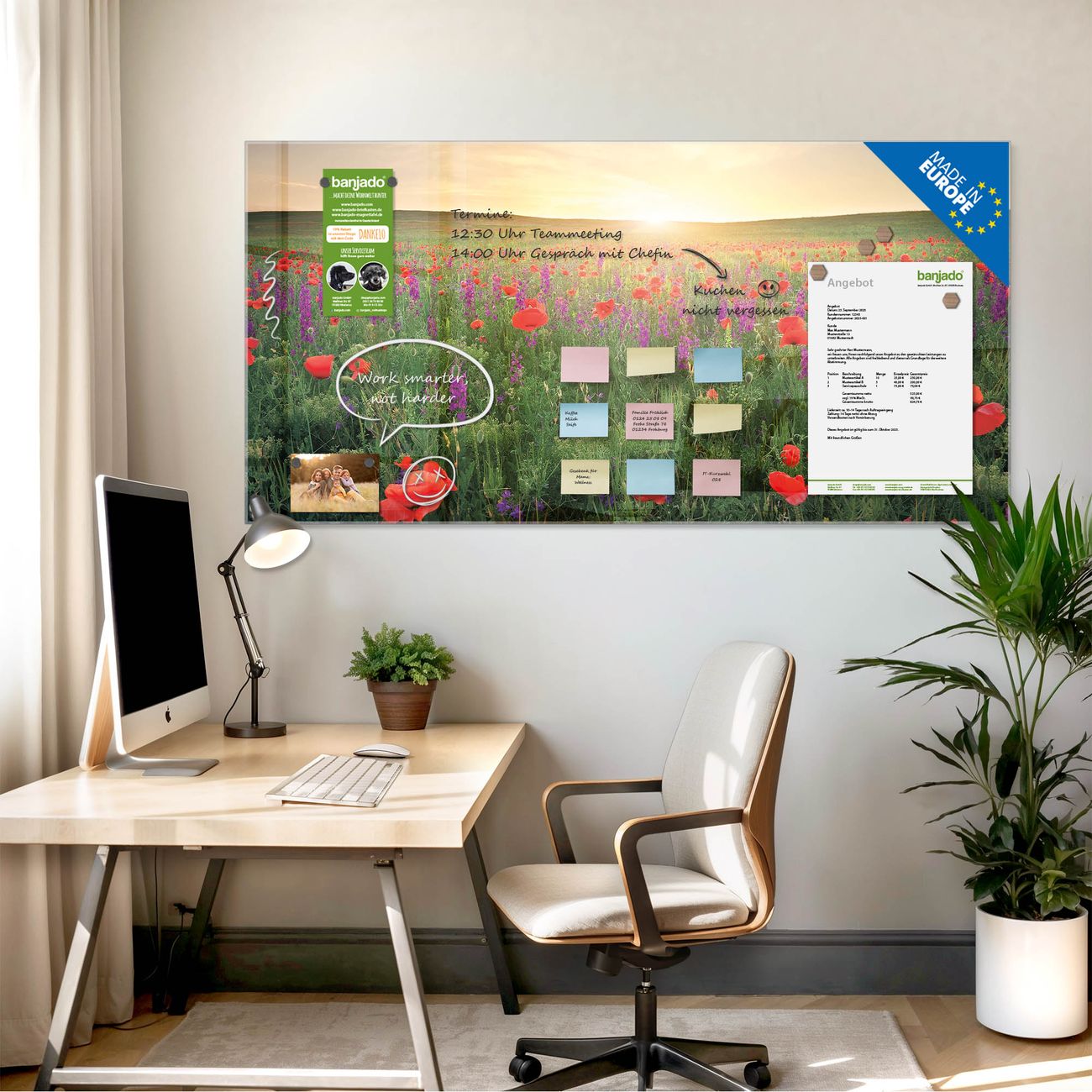 Jede Glas Magnettafel wird in unserer Werkstatt von Hand gefertigt und sorgfältig geprüft. So erhalten Sie ein echtes Qualitätsprodukt, das Funktion und Ästhetik perfekt vereint.?? Warum banjado?