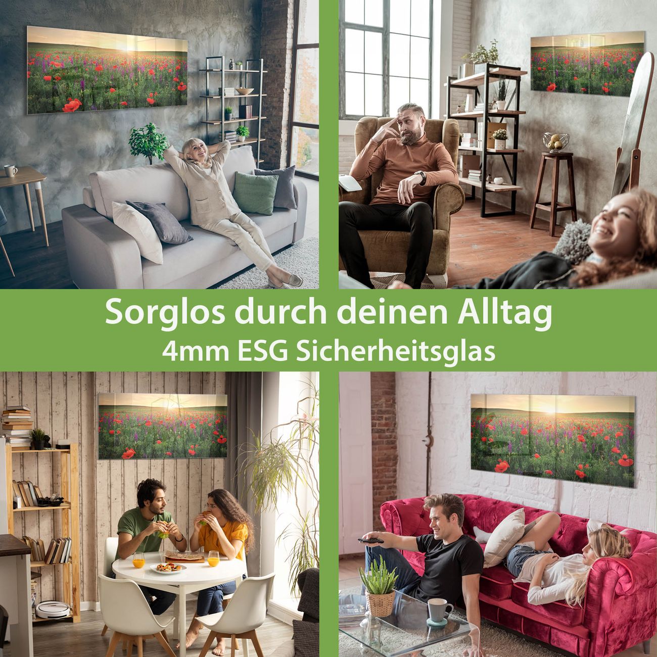 - Material: 4mm Sicherheitsglas mit Metallrückwand