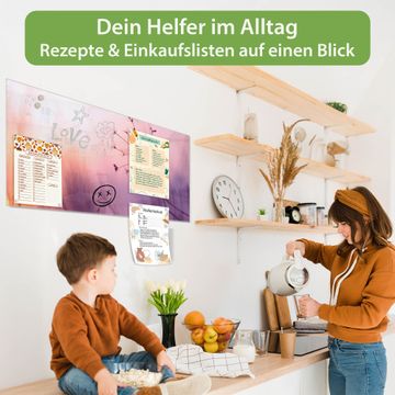 Auf der glatten Glasoberfläche lassen sich Termine, Rezepte oder Notizen ganz einfach mit Kreidestiften festhalten und rückstandslos entfernen. Starke Neodym-Magnete halten Ihre wichtigsten Erinnerungen sicher an Ort und Stelle. So entsteht Ihre ganz persönliche Ideenwand - jeden Tag neu.