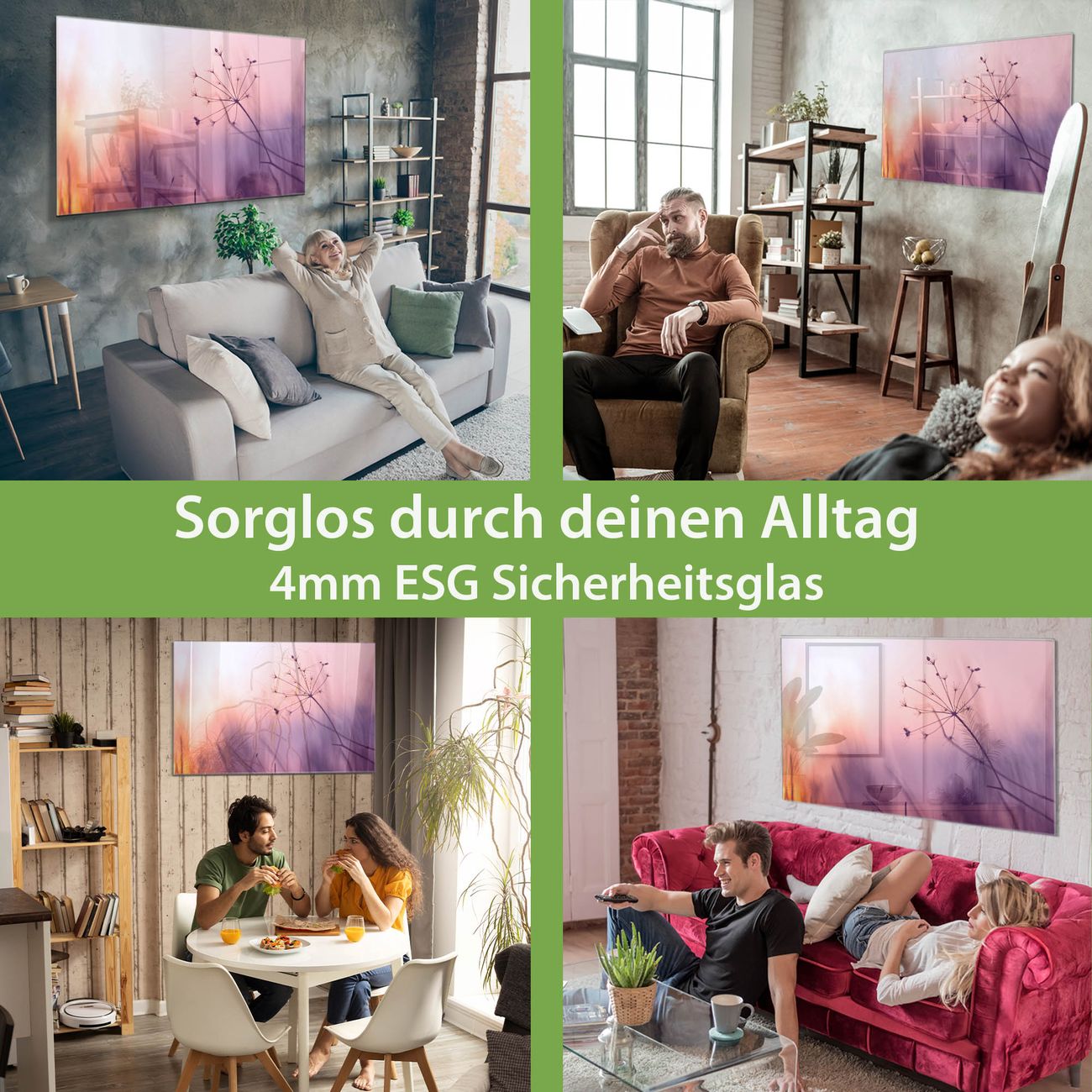 - Material: 4mm Sicherheitsglas mit Metallrückwand