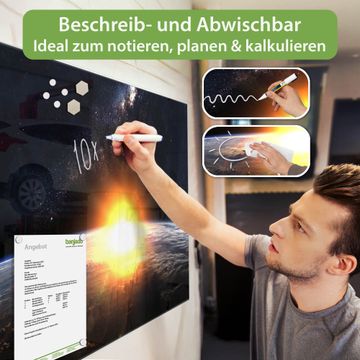 Die banjado Glas Magnettafel mit dem Motiv Motiv Sonne im Weltall verbindet Funktionalität mit Stil. Sie ersetzt das Zettelchaos durch klare Strukturen und bringt dabei eine warme, natürliche Atmosphäre in Ihr Zuhause. Ob im Büro, in der Küche oder im Eingangsbereich - dieses Design-Board zieht Blicke an und sorgt für Ordnung mit Charakter.