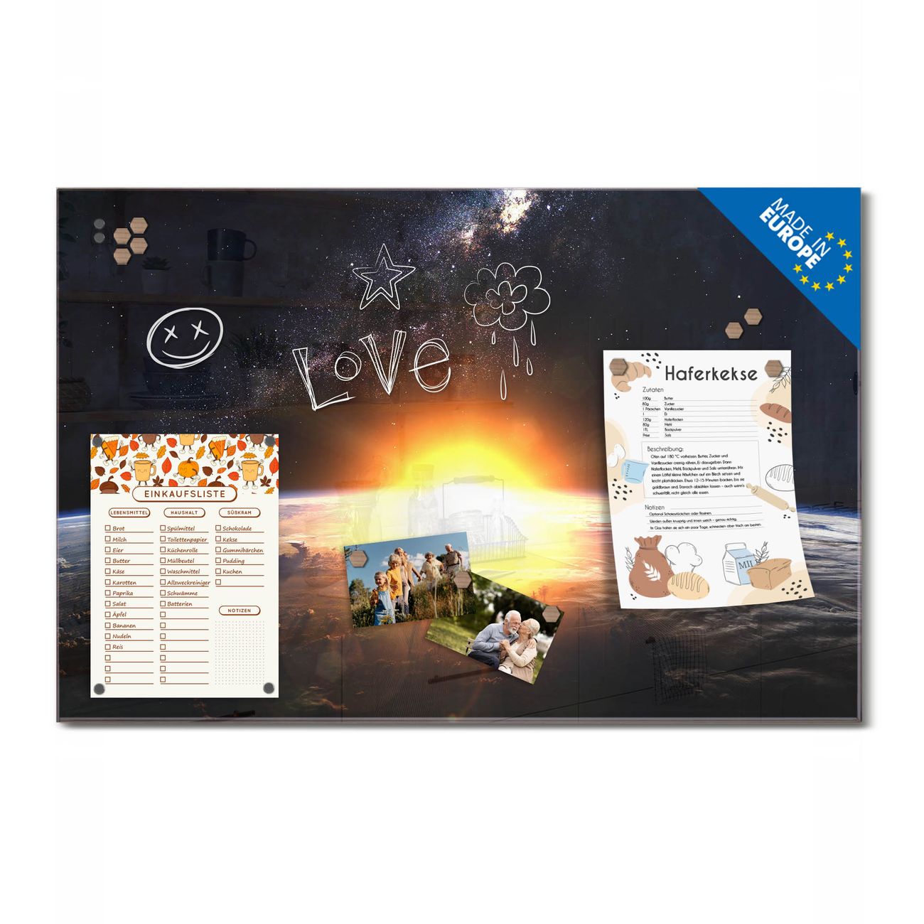 Glas Magnettafel im Querformat Motiv Sonne im Weltall