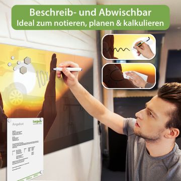 Die banjado Glas Magnettafel mit dem Motiv Motiv Sonnenanbeter verbindet Funktionalität mit Stil. Sie ersetzt das Zettelchaos durch klare Strukturen und bringt dabei eine warme, natürliche Atmosphäre in Ihr Zuhause. Ob im Büro, in der Küche oder im Eingangsbereich - dieses Design-Board zieht Blicke an und sorgt für Ordnung mit Charakter.