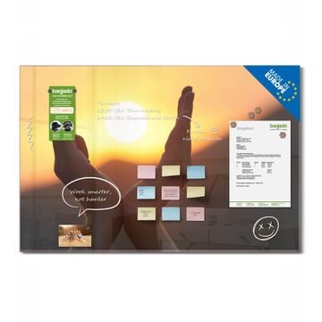 Die banjado Glas Magnettafel mit dem Motiv Motiv Sonnenanbeter verbindet Funktionalität mit Stil. Sie ersetzt das Zettelchaos durch klare Strukturen und bringt dabei eine warme, natürliche Atmosphäre in Ihr Zuhause. Ob im Büro, in der Küche oder im Eingangsbereich - dieses Design-Board zieht Blicke an und sorgt für Ordnung mit Charakter.