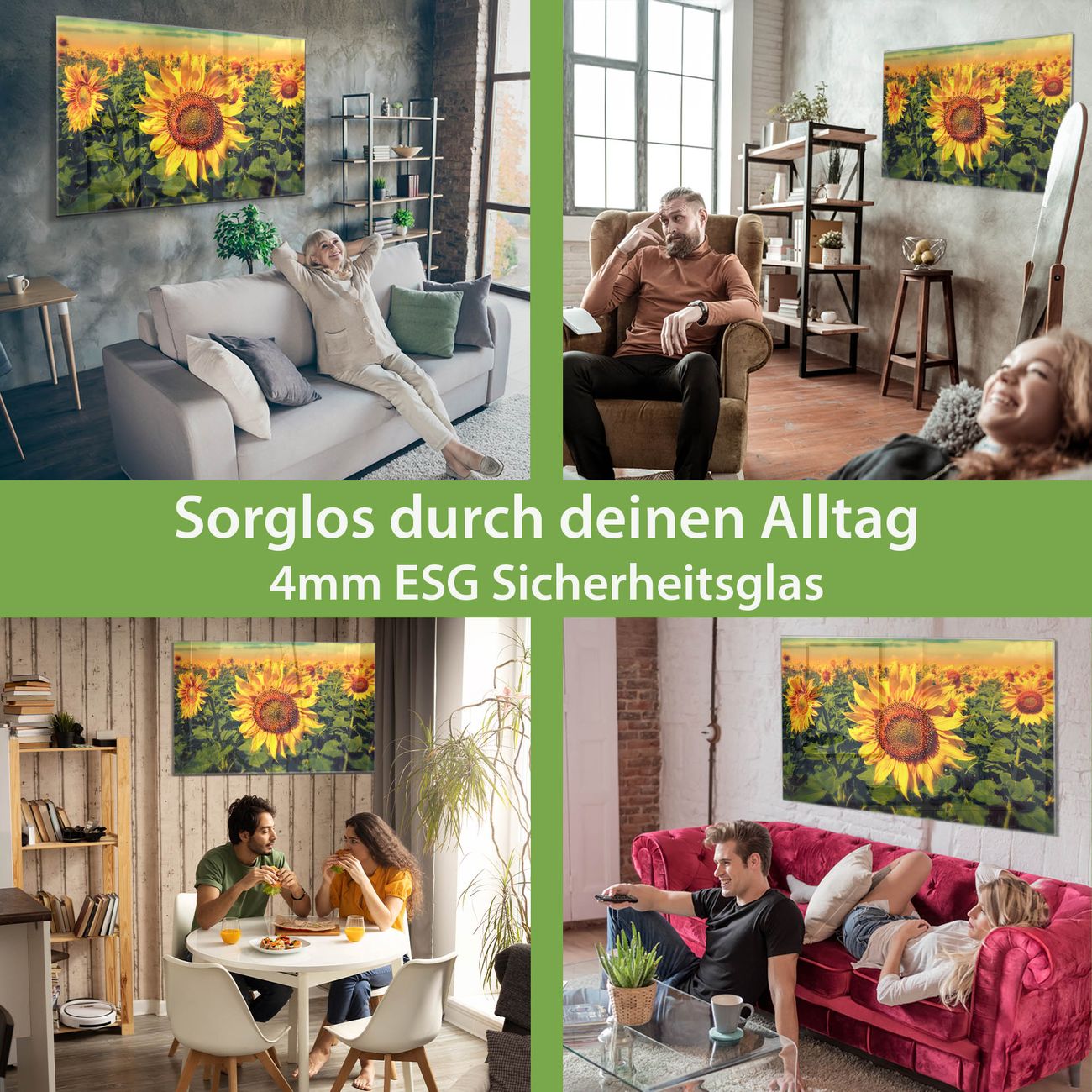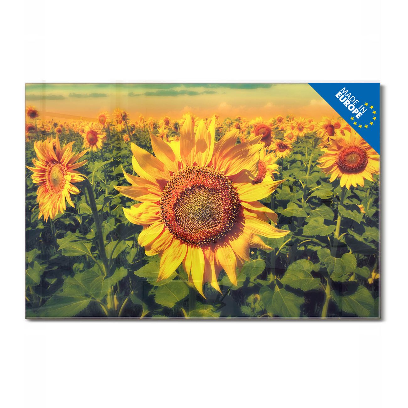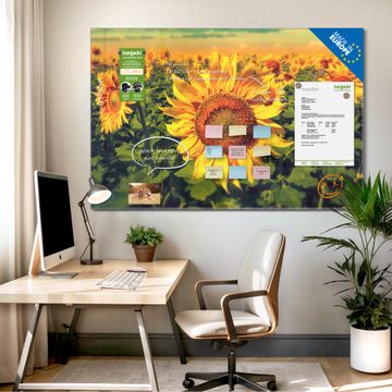 Glas Magnettafel im Querformat Motiv Sonnenblumen