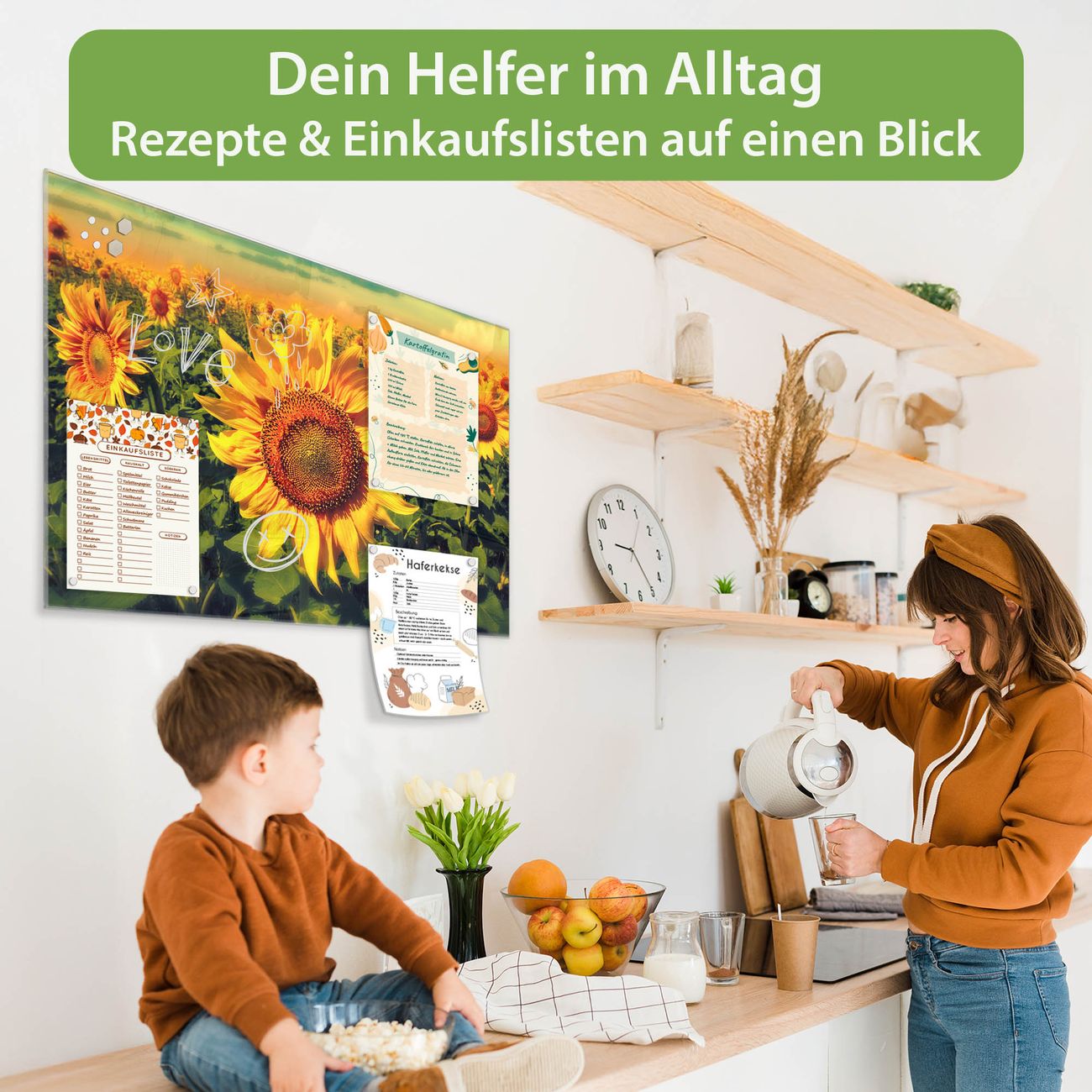 Ein Stück Design, das Ihren Alltag organisiert. Schreiben, heften, inspirieren - alles an einem Ort. Qualität, die man spürt. Montage leicht gemacht. Handwerk mit Herz - veredelt in Sachsen. Einzigartiges Design mit Motiv Motiv Sonnenblumen Beschreibbare Glasoberfläche, leicht zu reinigen Starke Magnetkraft durch Stahlrückwand Inklusive 4 Neodym-Magneten Flexible Montageoptionen Handveredelt in Sachsen - Qualität, die bleibt