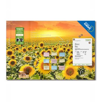 Die banjado Glas Magnettafel mit dem Motiv Motiv Sonnenblumenmeer verbindet Funktionalität mit Stil. Sie ersetzt das Zettelchaos durch klare Strukturen und bringt dabei eine warme, natürliche Atmosphäre in Ihr Zuhause. Ob im Büro, in der Küche oder im Eingangsbereich - dieses Design-Board zieht Blicke an und sorgt für Ordnung mit Charakter.