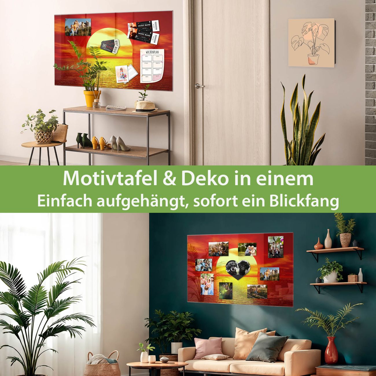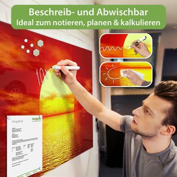 Die banjado Glas Magnettafel mit dem Motiv Motiv Sonnenuntergang verbindet Funktionalität mit Stil. Sie ersetzt das Zettelchaos durch klare Strukturen und bringt dabei eine warme, natürliche Atmosphäre in Ihr Zuhause. Ob im Büro, in der Küche oder im Eingangsbereich - dieses Design-Board zieht Blicke an und sorgt für Ordnung mit Charakter.