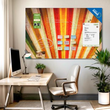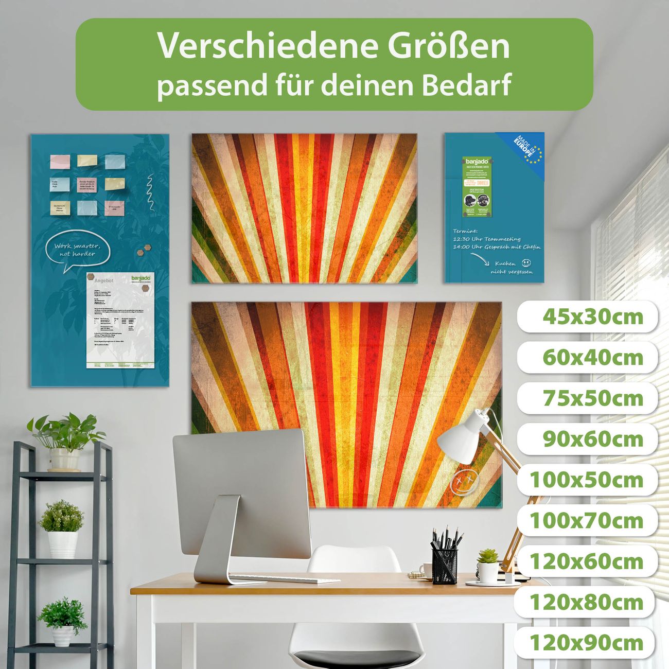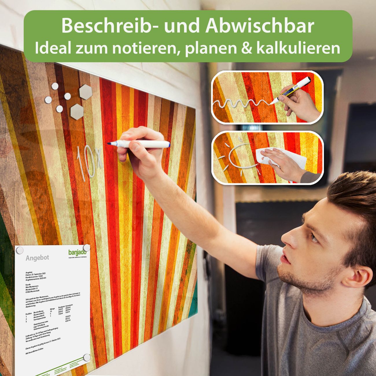 Die banjado Glas Magnettafel mit dem Motiv Motiv Sonnenuntergang Abstrakt verbindet Funktionalität mit Stil. Sie ersetzt das Zettelchaos durch klare Strukturen und bringt dabei eine warme, natürliche Atmosphäre in Ihr Zuhause. Ob im Büro, in der Küche oder im Eingangsbereich - dieses Design-Board zieht Blicke an und sorgt für Ordnung mit Charakter.