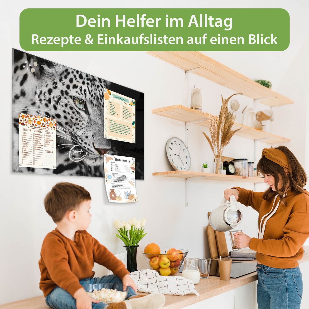 Die banjado Glas Magnettafel mit dem Motiv Motiv Sophie verbindet Funktionalität mit Stil. Sie ersetzt das Zettelchaos durch klare Strukturen und bringt dabei eine warme, natürliche Atmosphäre in Ihr Zuhause. Ob im Büro, in der Küche oder im Eingangsbereich - dieses Design-Board zieht Blicke an und sorgt für Ordnung mit Charakter.