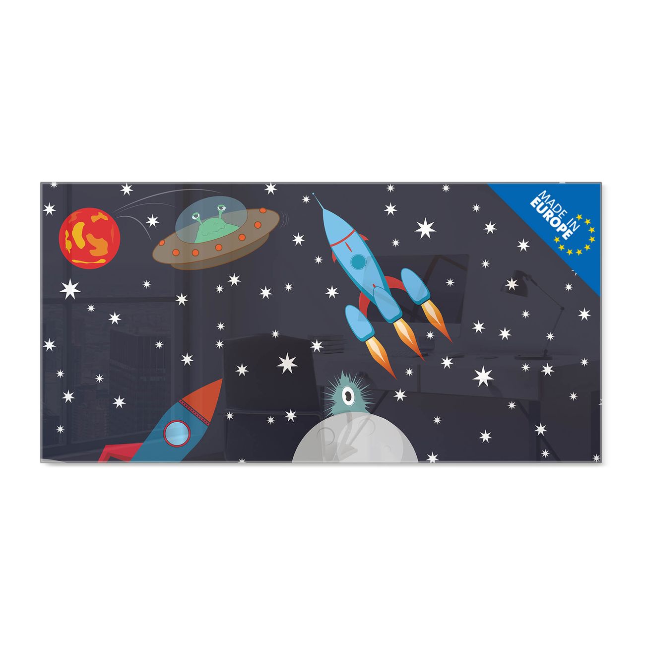 Glas Magnettafel im Querformat Motiv Space Traffic