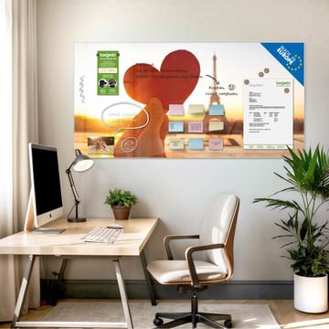 Auf der glatten Glasoberfläche lassen sich Termine, Rezepte oder Notizen ganz einfach mit Kreidestiften festhalten und rückstandslos entfernen. Starke Neodym-Magnete halten Ihre wichtigsten Erinnerungen sicher an Ort und Stelle. So entsteht Ihre ganz persönliche Ideenwand - jeden Tag neu.
