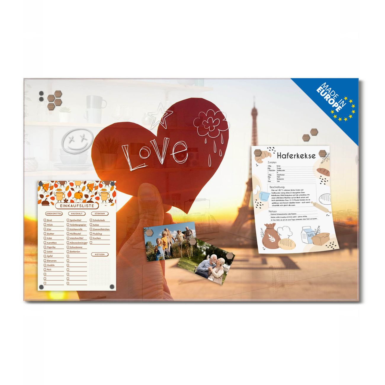Ein Stück Design, das Ihren Alltag organisiert. Schreiben, heften, inspirieren - alles an einem Ort. Qualität, die man spürt. Montage leicht gemacht. Handwerk mit Herz - veredelt in Sachsen. Einzigartiges Design mit Motiv Motiv Stadt Der Liebe Beschreibbare Glasoberfläche, leicht zu reinigen Starke Magnetkraft durch Stahlrückwand Inklusive 4 Neodym-Magneten Flexible Montageoptionen Handveredelt in Sachsen - Qualität, die bleibt