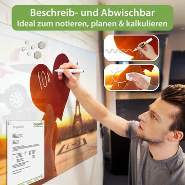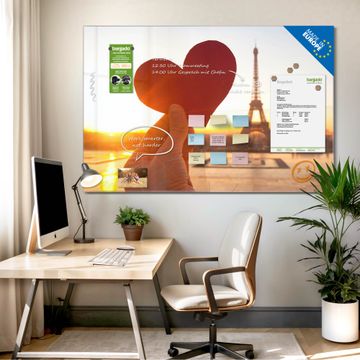 Die banjado Glas Magnettafel mit dem Motiv Motiv Stadt Der Liebe verbindet Funktionalität mit Stil. Sie ersetzt das Zettelchaos durch klare Strukturen und bringt dabei eine warme, natürliche Atmosphäre in Ihr Zuhause. Ob im Büro, in der Küche oder im Eingangsbereich - dieses Design-Board zieht Blicke an und sorgt für Ordnung mit Charakter.