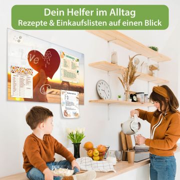 Auf der glatten Glasoberfläche lassen sich Termine, Rezepte oder Notizen ganz einfach mit Kreidestiften festhalten und rückstandslos entfernen. Starke Neodym-Magnete halten Ihre wichtigsten Erinnerungen sicher an Ort und Stelle. So entsteht Ihre ganz persönliche Ideenwand - jeden Tag neu.