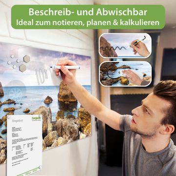 Die banjado Glas Magnettafel mit dem Motiv Motiv Steinbucht verbindet Funktionalität mit Stil. Sie ersetzt das Zettelchaos durch klare Strukturen und bringt dabei eine warme, natürliche Atmosphäre in Ihr Zuhause. Ob im Büro, in der Küche oder im Eingangsbereich - dieses Design-Board zieht Blicke an und sorgt für Ordnung mit Charakter.