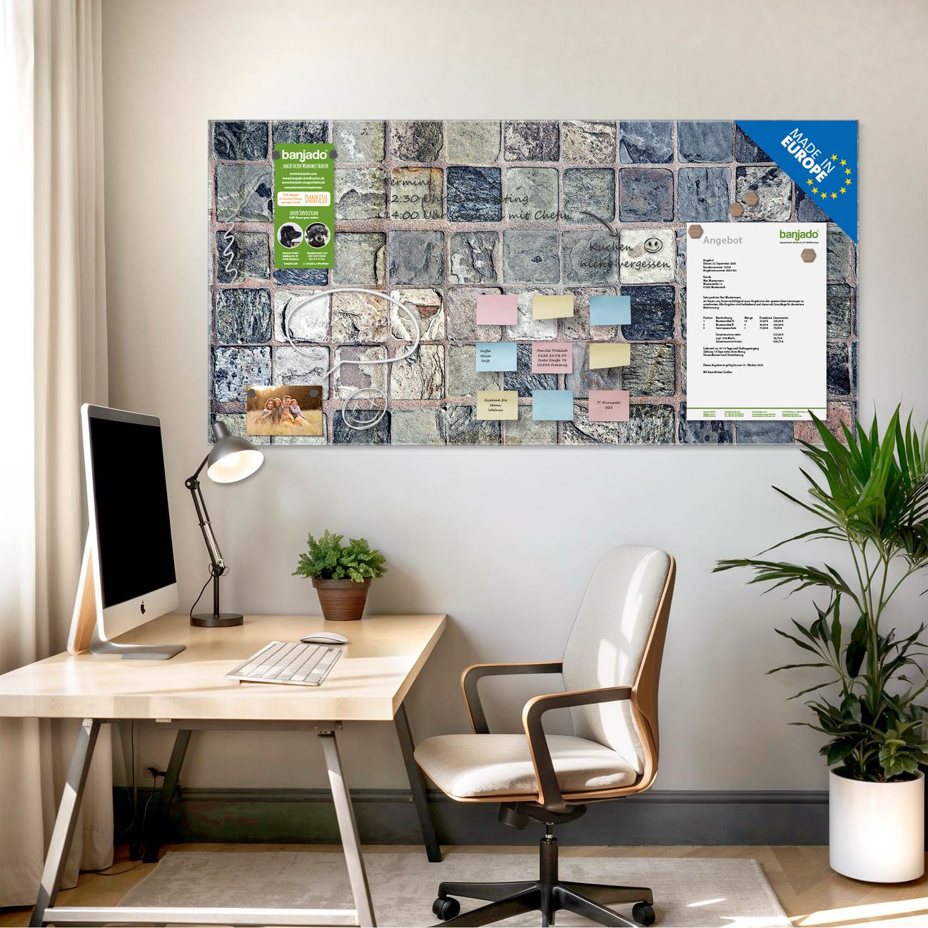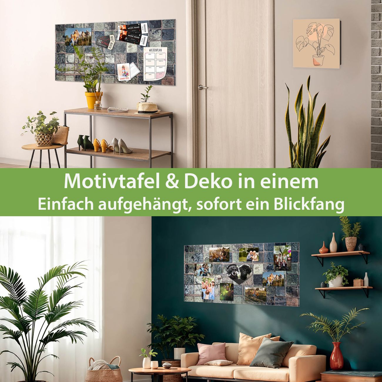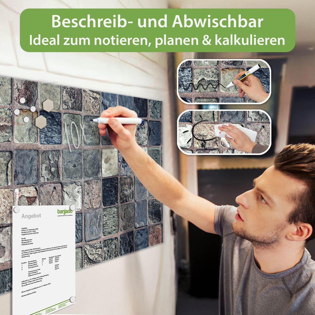 Die banjado Glas Magnettafel mit dem Motiv Motiv Steinfliesen verbindet Funktionalität mit Stil. Sie ersetzt das Zettelchaos durch klare Strukturen und bringt dabei eine warme, natürliche Atmosphäre in Ihr Zuhause. Ob im Büro, in der Küche oder im Eingangsbereich - dieses Design-Board zieht Blicke an und sorgt für Ordnung mit Charakter.