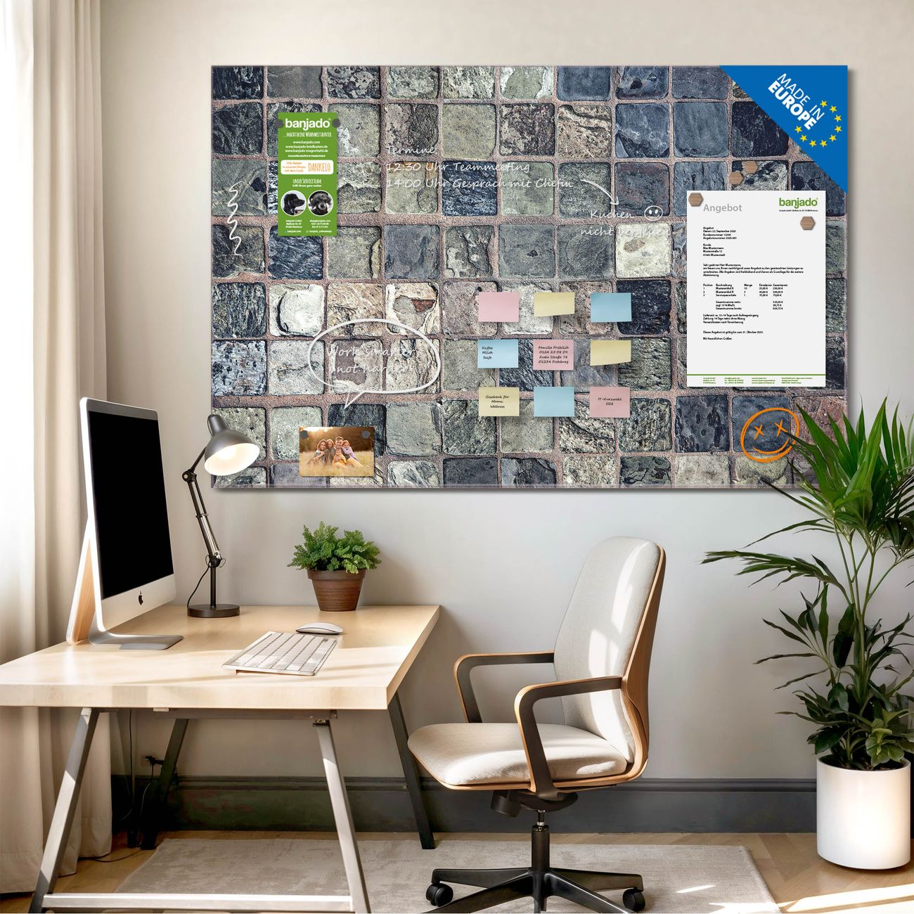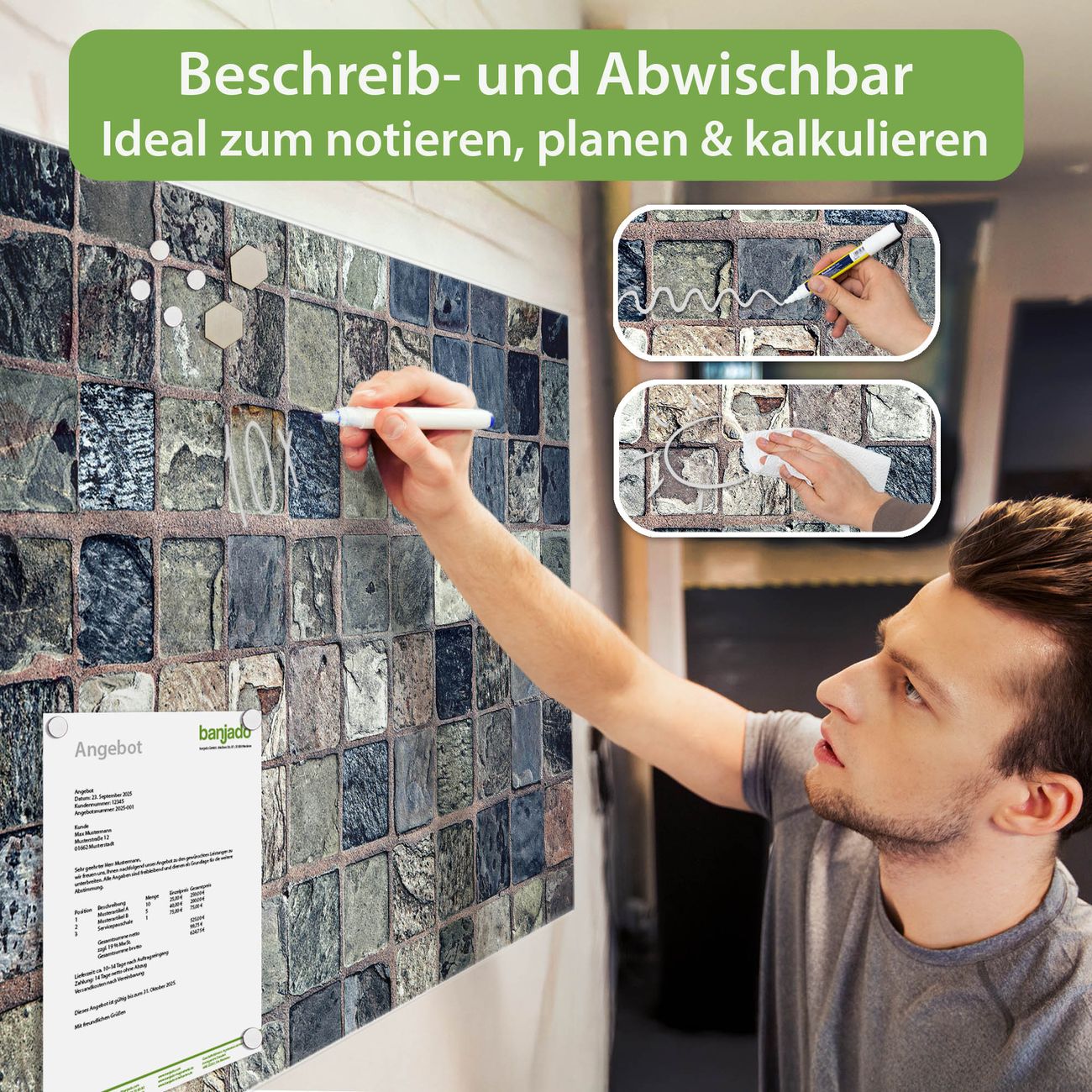 Die banjado Glas Magnettafel mit dem Motiv Motiv Steinfliesen verbindet Funktionalität mit Stil. Sie ersetzt das Zettelchaos durch klare Strukturen und bringt dabei eine warme, natürliche Atmosphäre in Ihr Zuhause. Ob im Büro, in der Küche oder im Eingangsbereich - dieses Design-Board zieht Blicke an und sorgt für Ordnung mit Charakter.