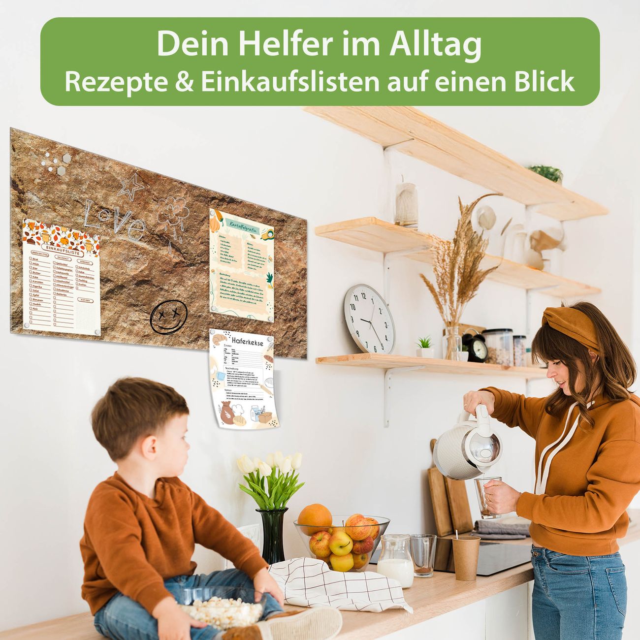 Auf der glatten Glasoberfläche lassen sich Termine, Rezepte oder Notizen ganz einfach mit Kreidestiften festhalten und rückstandslos entfernen. Starke Neodym-Magnete halten Ihre wichtigsten Erinnerungen sicher an Ort und Stelle. So entsteht Ihre ganz persönliche Ideenwand - jeden Tag neu.
